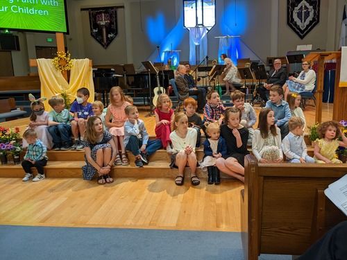 - Worship bags and coloring supplies are available for children who wish to worship in the pews with their families.